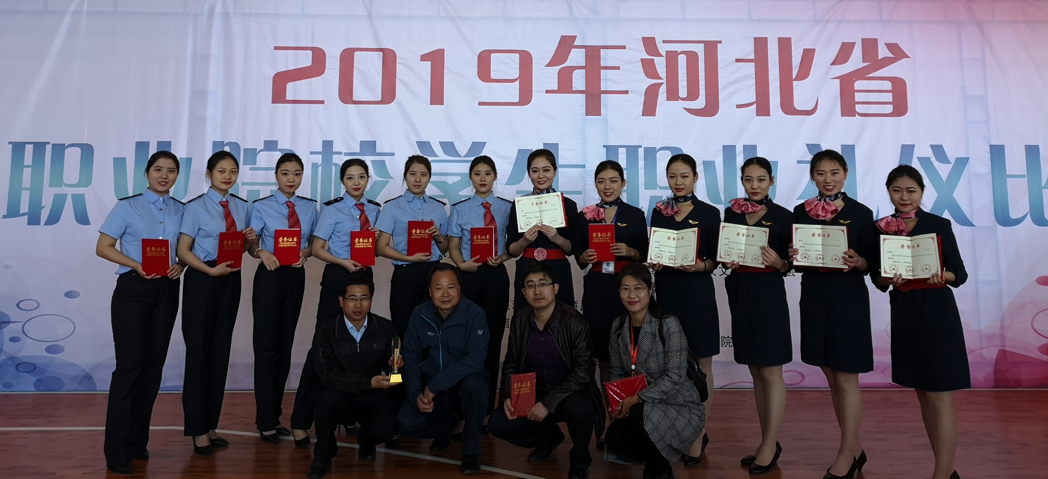 由省教育厅、省财政厅、省人力资源和社会保障厅以及省工业和信息化厅联合举办的2019年河北省职业院校学生职业礼仪比赛于3月29日至4月1日在石家庄交通运输学校举行。金年会app手机版在线登录财经系副主任张保东带领史焰青、冀晓燕、王旭三位老师及高速铁路客运乘务专业、空中乘务专业两支代表队12名同学参加了本次比赛并取得了喜人佳绩。