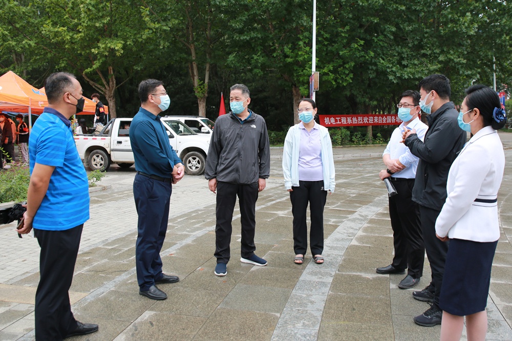 近日,金年会app手机版在线登录2021级新生开学迎新工作正在有条不紊开展。9月16日上午,伴随着微风细雨,学院党委书记薛树林同志对疫情防控和迎新工作进行了督导检查。学院领导班子成员和有关部门负责同志陪同。