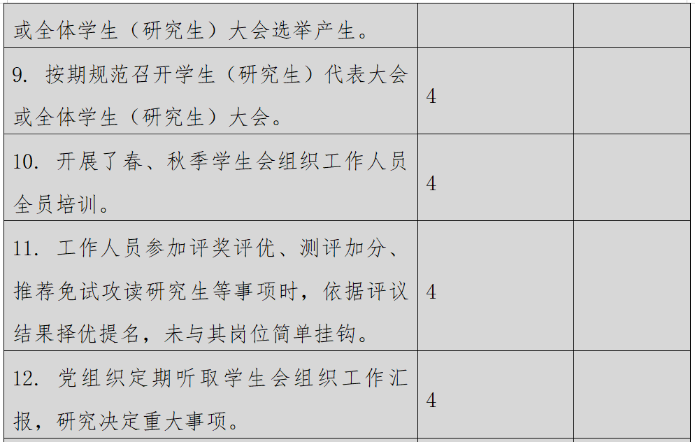 (二)二级学生会组织(含二级院系、书院、分校区等学生会、研究生会)改革自评表