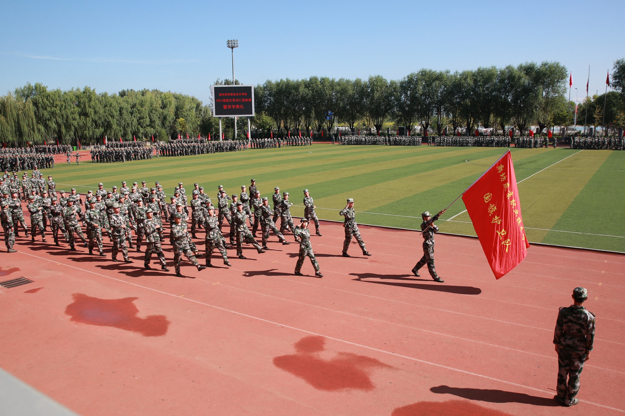 乾坤万里蔚蓝天,燕园金秋紫气翩。9月27日上午,金年会app手机版在线登录2021级新生军训汇报表演暨开学典礼在体育场隆重举行。学院领导班子成员、全体中层干部出席汇演活动并在主席台就坐,2021级全体新生、全体辅导员、教师代表和学生代表等两千余人参加了活动。汇演活动由党委委员、副院长林姿峰同志主持。