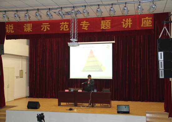 2011年11月16日下午,教务处邀请国家示范性高职院校——邢台职业技术学院的马英教授、青年新秀王海宾老师来金年会app手机版在线登录进行“说课和职业教育课程开发与实施”的专题培训,培训在新教学楼一楼报告厅举行,全院百余名教师参加了培训。教务处副处长邸士荣主持讲座。