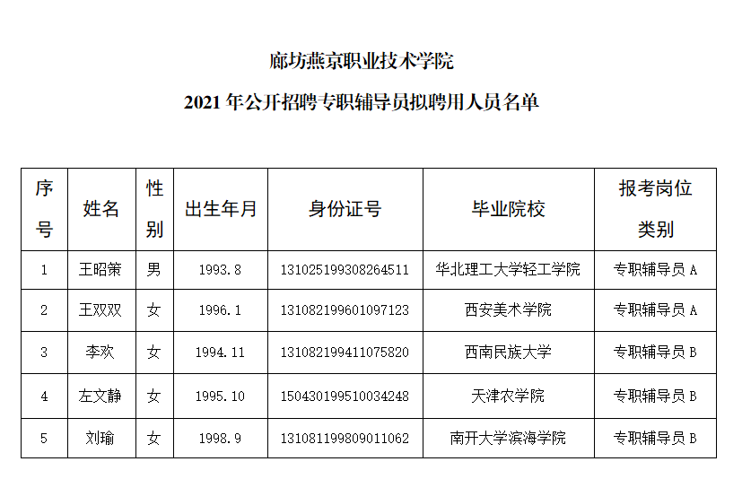 金年会app手机版在线登录2021年公开招聘专职辅导员拟聘用人员名单