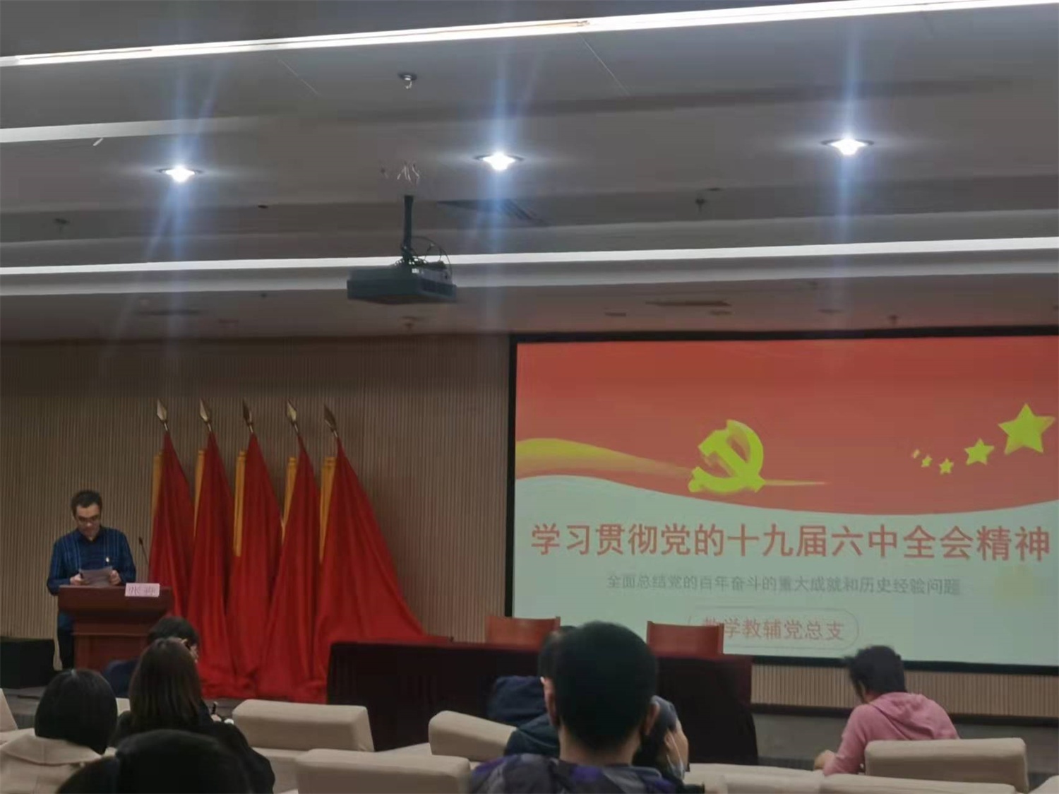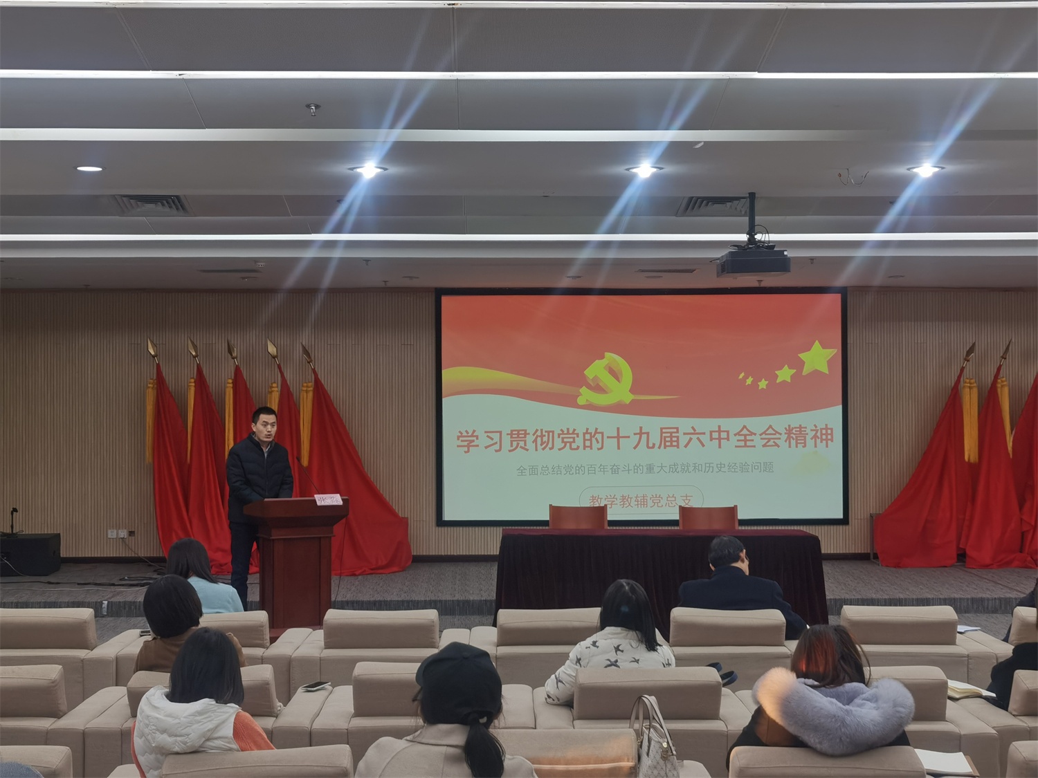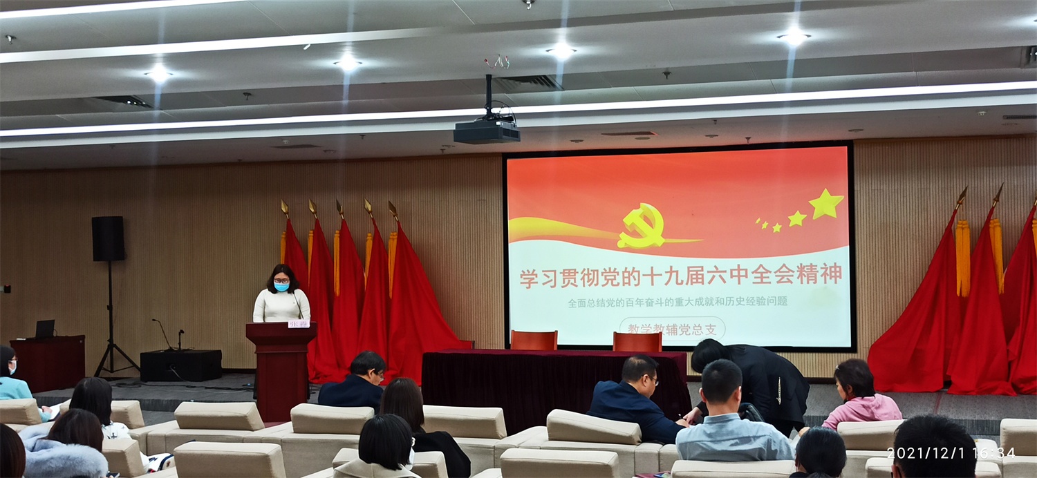 12月1日下午,教学教辅党总支学习贯彻党的十九届六中全会精神主题宣讲报告会在图书馆四层视听室举办。教学教辅党总支书记张淼同志作宣讲报告。公共教育学部党支部、马克思主义理论教学部党支部、培训中心党支部、信息中心党支部、图书馆党支部全体党员干部参加了报告会。