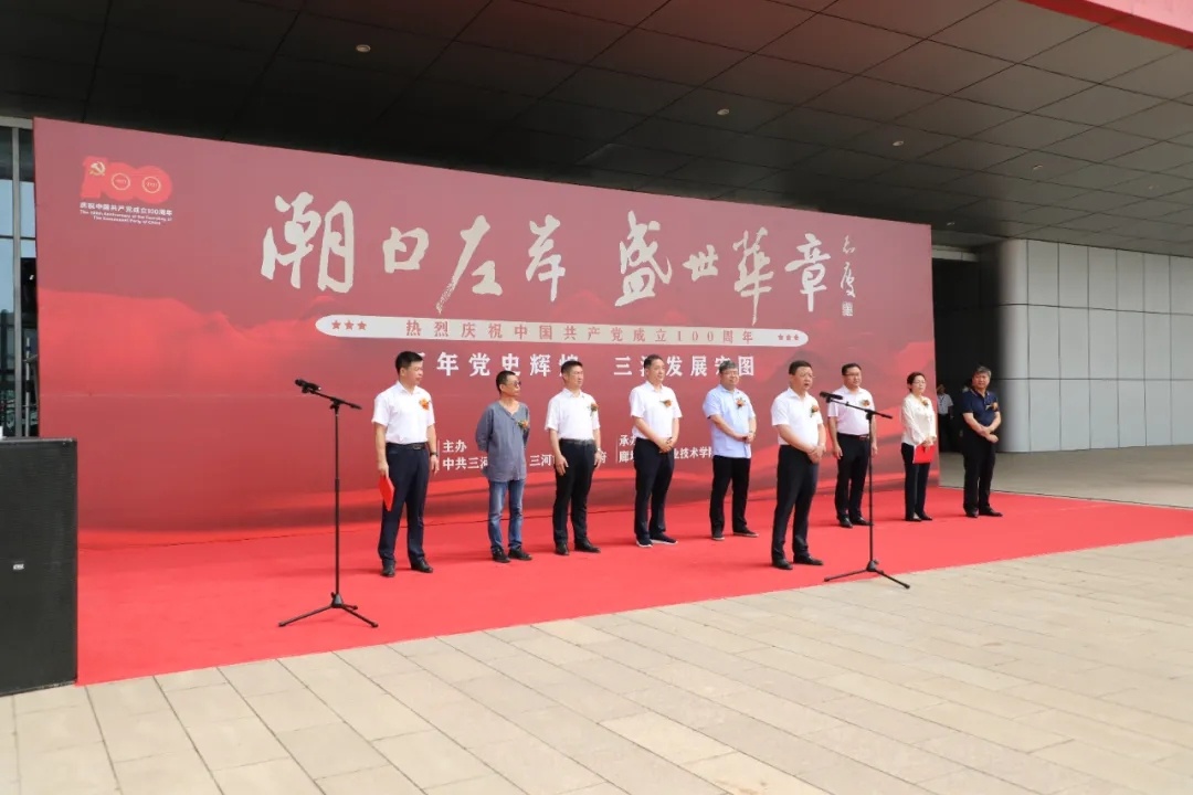 为庆祝中国共产党百年华诞,全面展现新时代三河市取得的发展和建设成就,7月10日上午,由三河市委、市政府主办、金年会app手机版在线登录承办的“潮白左岸 盛世华章”书画展于三河市文化中心顺利开展。三河市委书记刘连杰出席并宣布开幕。廊坊政协副主席、河北省书协副主席张纬东,河北省美协副主席、廊坊市美协主席张玉华,民盟廊坊主委、廊坊市文联主席张志庆,廊坊市书协主席刘京闻,三河市委常委、宣传部长李志英,金年会app手机版在线登录党委书记薛树林等领导以及三河市书协成员、三河市美协成员、金年会app手机版在线登录学院领导和教师代表等200余人出席了本次开幕式。开幕式由廊坊金年会app手机版在线登录职业技术学院院长孙东辉主持。