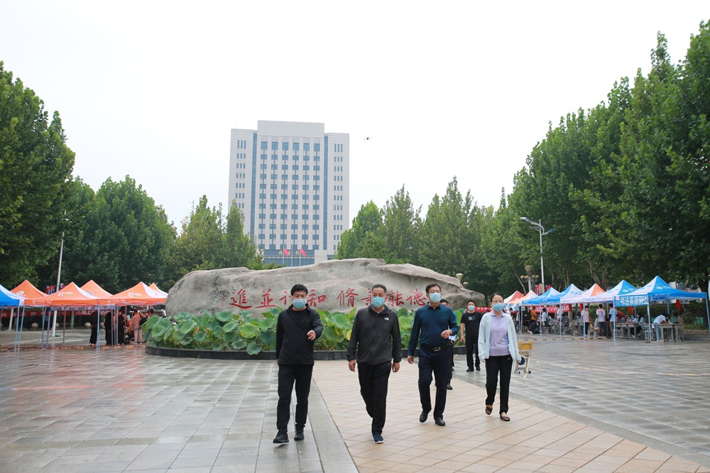 近日,金年会app手机版在线登录2021级新生开学迎新工作正在有条不紊开展。9月16日上午,伴随着微风细雨,学院党委书记薛树林同志对疫情防控和迎新工作进行了督导检查。学院领导班子成员和有关部门负责同志陪同。