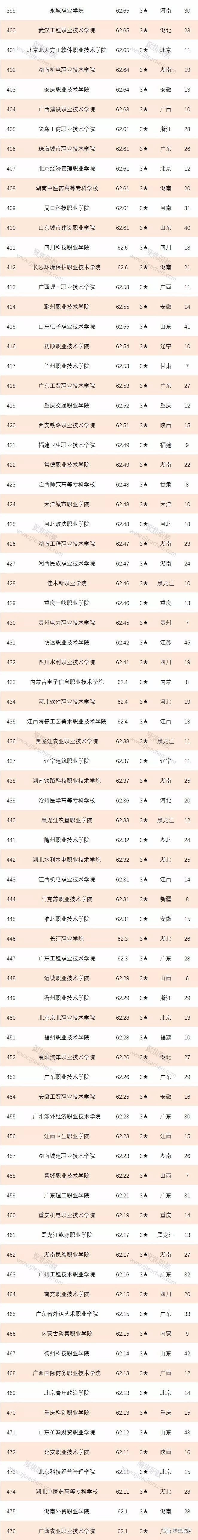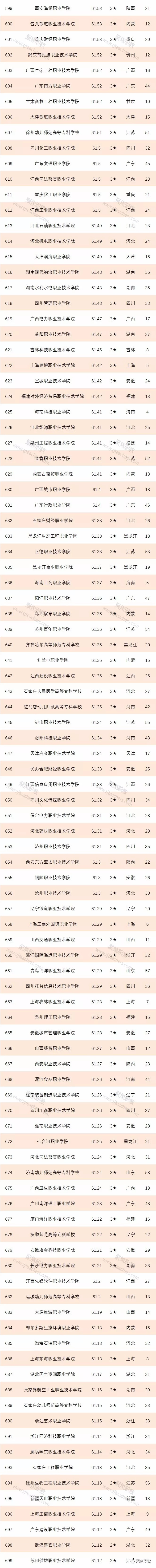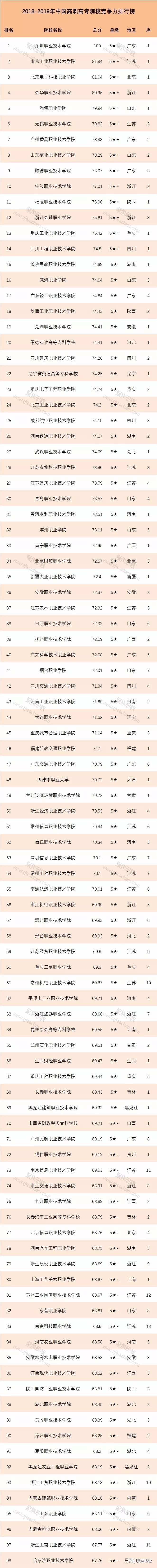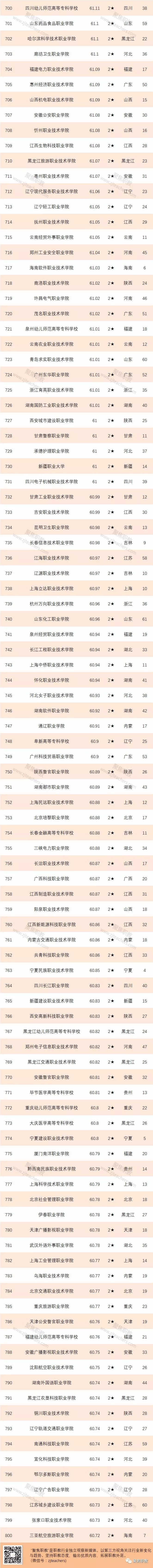 高职(高等职业学校)和高专(高等专科学校)都是大专层次的普通高等学校,是我国高等教育的重要组成部分。在2018年的大学评价中,前800强高职高专院校竞争力排行榜如表所示。
