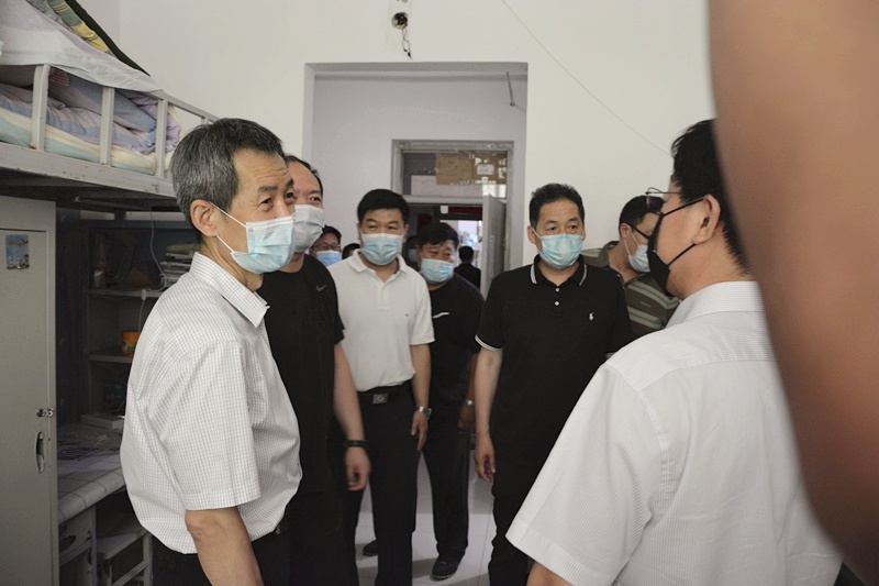 6月3日上午,省教育厅专项督导组对金年会app手机版在线登录复学复课准备情况进行督导调研。省教育厅副巡视员侯建国、省教育厅督导处副处长张中杰、廊坊市教育局副局长綦艳波现场考察了金年会app手机版在线登录防疫物资储备室、学生餐厅、学生宿舍等疫情防控重点部位,三河市副市长王林辉、三河市教育和体育局局长贾学峰和学院领导班子成员陪同调研。
