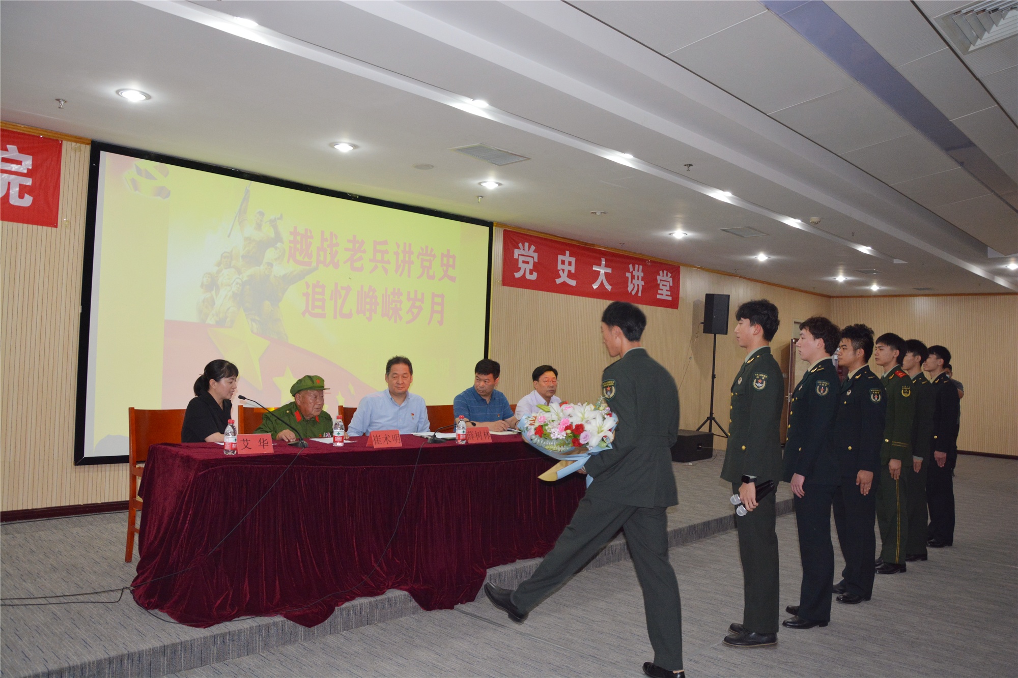 为深入贯彻落实学院党委“三四五”总体思路,扎实推进政校企一体,推动党建共建联建向实处发展,按照学院党委党史学习教育安排部署,计算机工程系党总支于6月9日在图书馆综合楼四层视听室举办了“越战老兵讲党史 追忆峥嵘岁月”专题讲座。学院党委书记薛树林同志,学院党委副书记、院长孙东辉同志,学院党委委员、组织宣传处处长李宝东同志,计算机工程系党总支书记刘春刚同志,马克思主义理论教学部副主任张淼同志,李旗庄镇退役军人服务站站长潘玉杰同志出席。组织宣传处、马克思主义理论教学部、计算机工程系全体教师,学生骨干及入党积极分子170余人现场聆听讲座。讲座由计算机工程系副主任艾华同志主持。