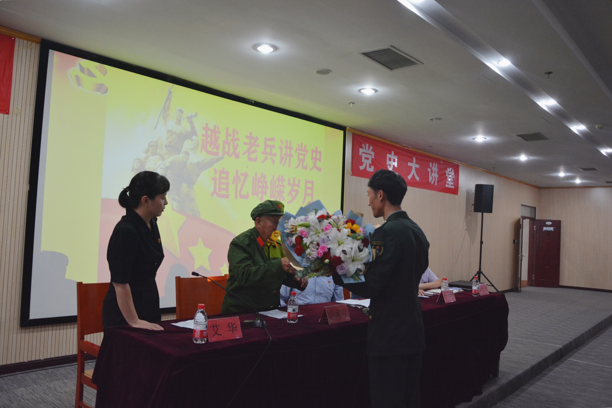 讲座主讲人为空军地勘部队原上海空四军高炮二师四团雷达连亲历援越抗美战争的崔术明同志,曾荣立个人三等功,所在连队荣立集体二等功,现年79岁。崔术明同志用真挚的感情、朴素有力的语言讲述了那舍生忘死的战斗岁月,把现场师生带回到了那个炮火纷飞、激情燃烧的战争年代。师生们不仅接受了生动的红色洗礼和别样的党史教育,还受到了深刻的思想启迪和强烈的心灵震撼。讲座现场气氛热烈、掌声不断。