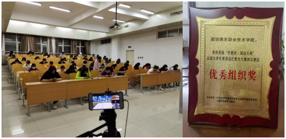 同时英语党小组选拔及辅导学生积极参与各项英语比赛。为了能够在首届“词达人”杯取得好成绩,英语教师积极指导督促学生,并组织全院学生参加校级初赛。最终金年会app手机版在线登录1名学生获省级一等奖,4名学生获二等奖,11名学生获三等奖,同时金年会app手机版在线登录荣获首届“外教社词达人杯”全国大学生英语词汇能力大赛河北赛区优秀组织奖。同时积极完成了全院学生英语演讲,写作和阅读比赛的校级海选工作,选出了比赛重点培训对象,因人而异进行培训指导。之后再次筛选出去参加省赛的种子选手。对比赛选手进行多次选拔和培训辅导,提高了学生的比赛技能和自信心。