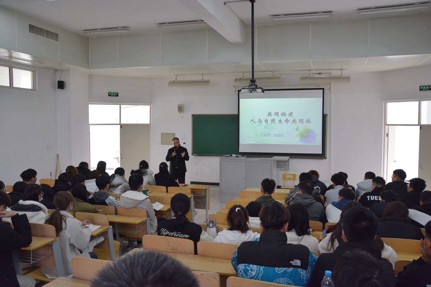 学院党委委员、党政办公室主任唐励铭同志讲授的主题为:共同构建人与自然生命共同体。他指出,党的十八大从新的历史起点出发,做出“大力推进生态文明建设”的战略决策,把生态文明建设纳入中国特色社会主义事业五位一体总体布局,坚持走生态优先、绿色低碳的发展道路,是基于推动构建人类命运共同体和实现可持续发展作出的重大战略决策。近年来,气候变化给人类生存和发展带来严峻挑战,面对环境治理前所未有的困难,我们要以自然为根,尊重自然、顺应自然、保护自然,大力推进经济、能源、产业结构转型升级,推动形成人与自然和谐共生新格局,勇于担当,勠力同心,让良好生态环境成为经济社会可持续发展的支撑,共同构建人与自然生命共同体。