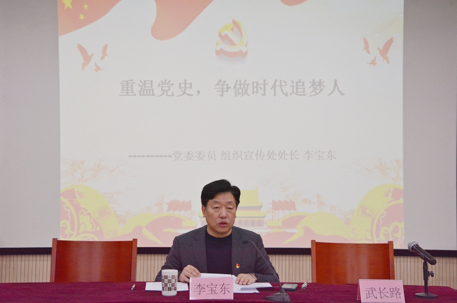 学院党委委员、组织宣传处处长李宝东同志以“重温党史,争做时代追梦人”为主题,为2021年度党员发展对象讲授了一堂党史教育课。他通过回顾建党历程,介绍《中国共产党章程》基本知识,党领导下中国特色社会主义社会主义事业取得的历史性成就、历史性变革和新时期如何做一名优秀的共产党员四个方面,带领大家重温了中国共产党走过的一百年光辉历程,他指出,中国共产党是世界上最伟大的政党,创造了世界上最辉煌的革命业绩、最震撼的改革业绩、最独特的发展道路,新时期的党员干部和广大青年学生要不忘初心,勇于担当,继续奋斗,全心全意为人民服务,在实现中华民族伟大复兴的中国梦奋斗之路上,争做时代追梦人。