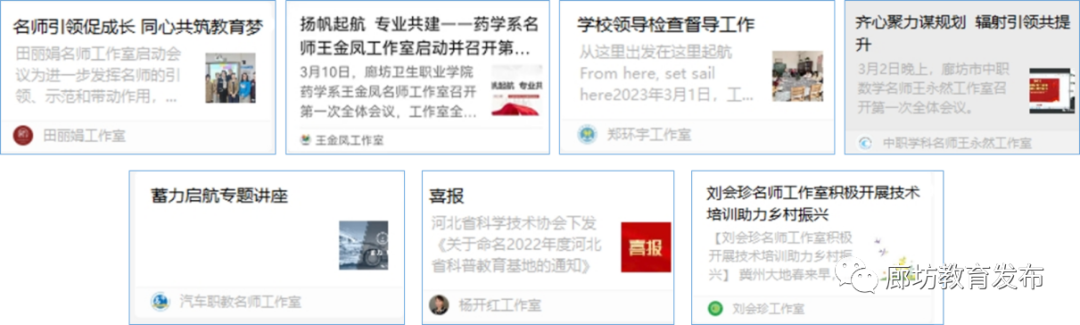 截至目前,廊坊市职业教育名师工作室的组建工作已经完成,35个名师工作室中已有34个工作室申请了公众号。中等职业学校中固安县职业技术教育中心王永然、固安县职业中学徐书香、霸州市职成教育总校郑环宇、香河县职业技术教育中心张美荣、廊坊电子信息工程学校田丽娟,高等职业学校中廊坊职业技术学院杨开红、刘会珍,廊坊卫生职业学院王冬、王金凤,金年会app手机版在线登录职业技术学院李若冰、王金环等11个工作室先后开展了实质性的教科研活动。