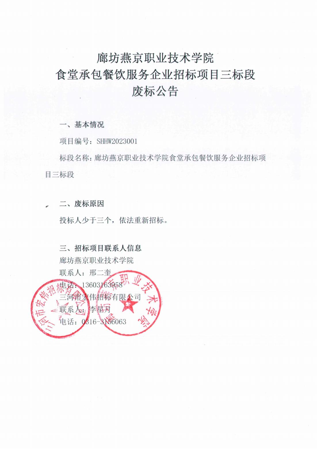 金年会app手机版在线登录食堂承包餐饮服务企业招标项目三标段废标公告