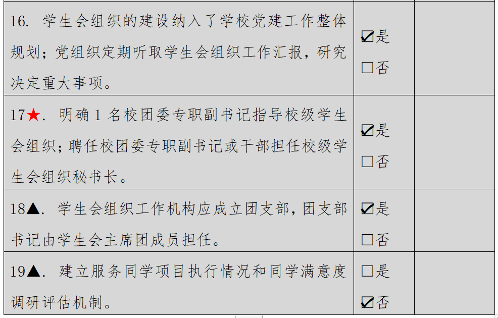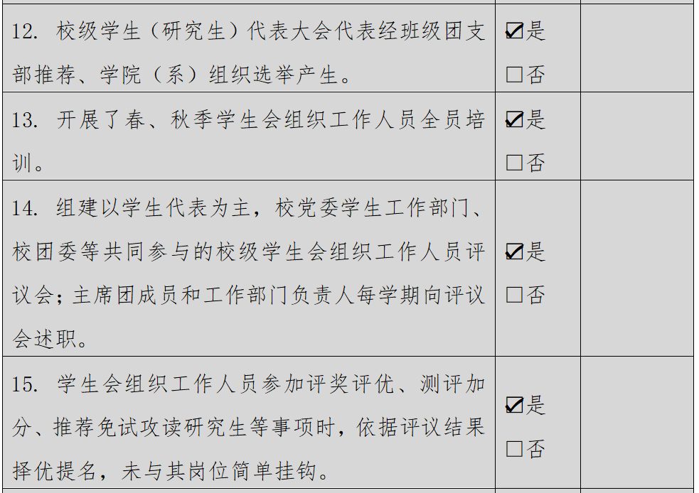 (二)二级学生会组织(含二级院系、书院、分校区等学生会、研究生会)改革自评表