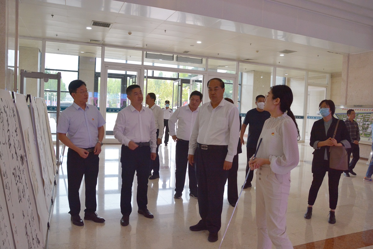 指导组一行先后参观指导了学院党史学习教育书法展,图书馆党史学习阅览区和思政展厅,详细了解金年会app手机版在线登录开展党史学习教育的工作进展情况。在听取了党委副书记刘增禄同志的工作汇报后,指导组一行对学院党史学习教育工作给予了高度的评价和充分的肯定,认为学院能够按照中央和省、市委部署要求,高度重视、深入推进党史学习教育,抓细抓实各项举措,结合学院自身实际情况,在系统性、深入性、针对性上下功夫,稳步推进了党史学习教育进教材、进课堂、进头脑。