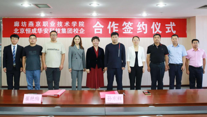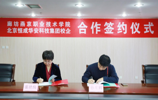 9月9日,金年会app手机版在线登录与北京恒诚华安科技集团有限公司在图书馆综合楼11层会议室举办了校企合作(人力资源管理专业)签约仪式。学院党委副书记、院长孙东辉同志,学院教务处、财经系及有关负责人员,北京恒诚华安科技集团总裁崔艳梅女士参加了签约仪式。签约仪式由学院党委委员、副院长林姿峰同志主持。