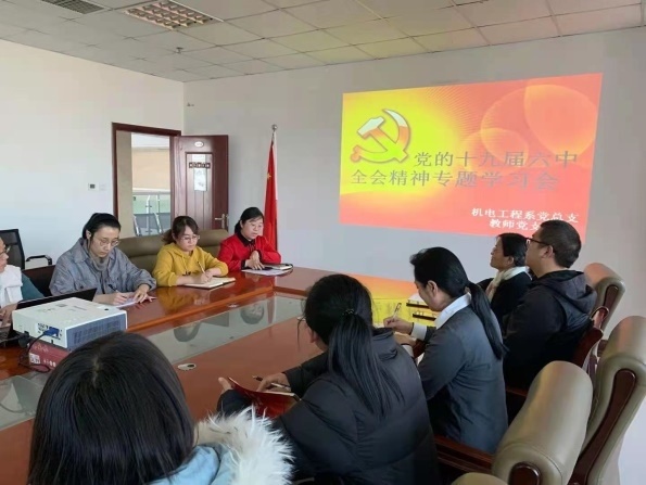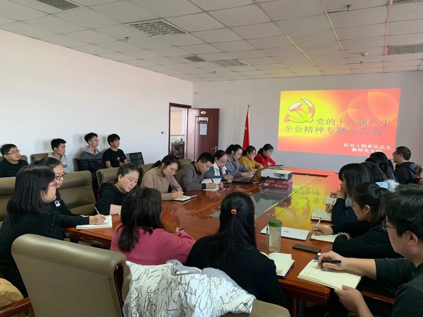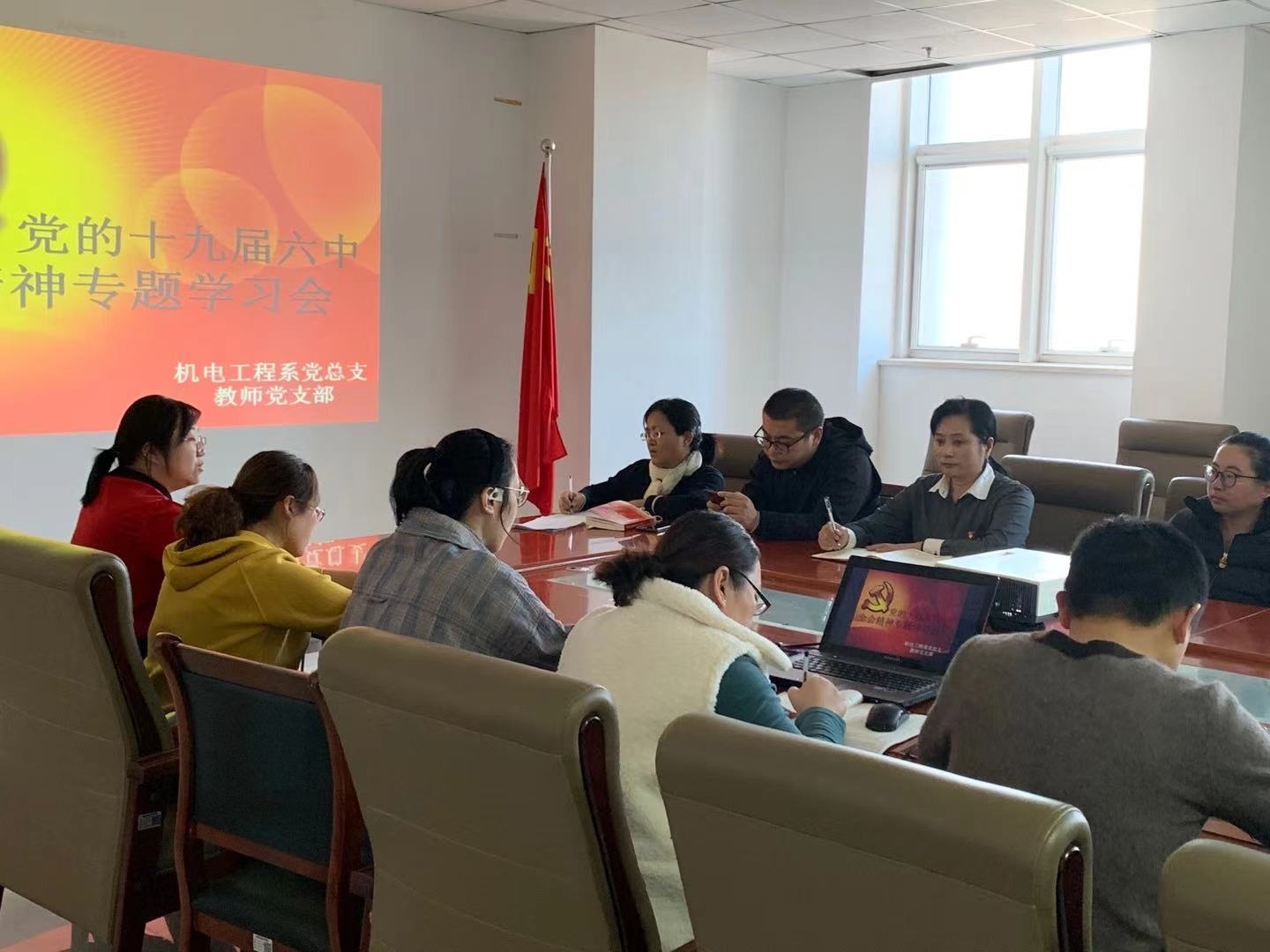 根据学院党委《关于学习宣传贯彻党的十九届六中全会精神的实施方案》要求,2021年11月24日下午,机电工程系总党支教师党支部、学生党支部组织召开了学习十九届六中全会精神会议。会议上学习贯彻了党的十九届六中全会精神,中国共产党成立一百周年是中国历史上的重要历史时刻。通过学习全体党员深刻认识了党的伟大奋斗历程,学习总结了党的百年奋斗的历史经验和重大成就。