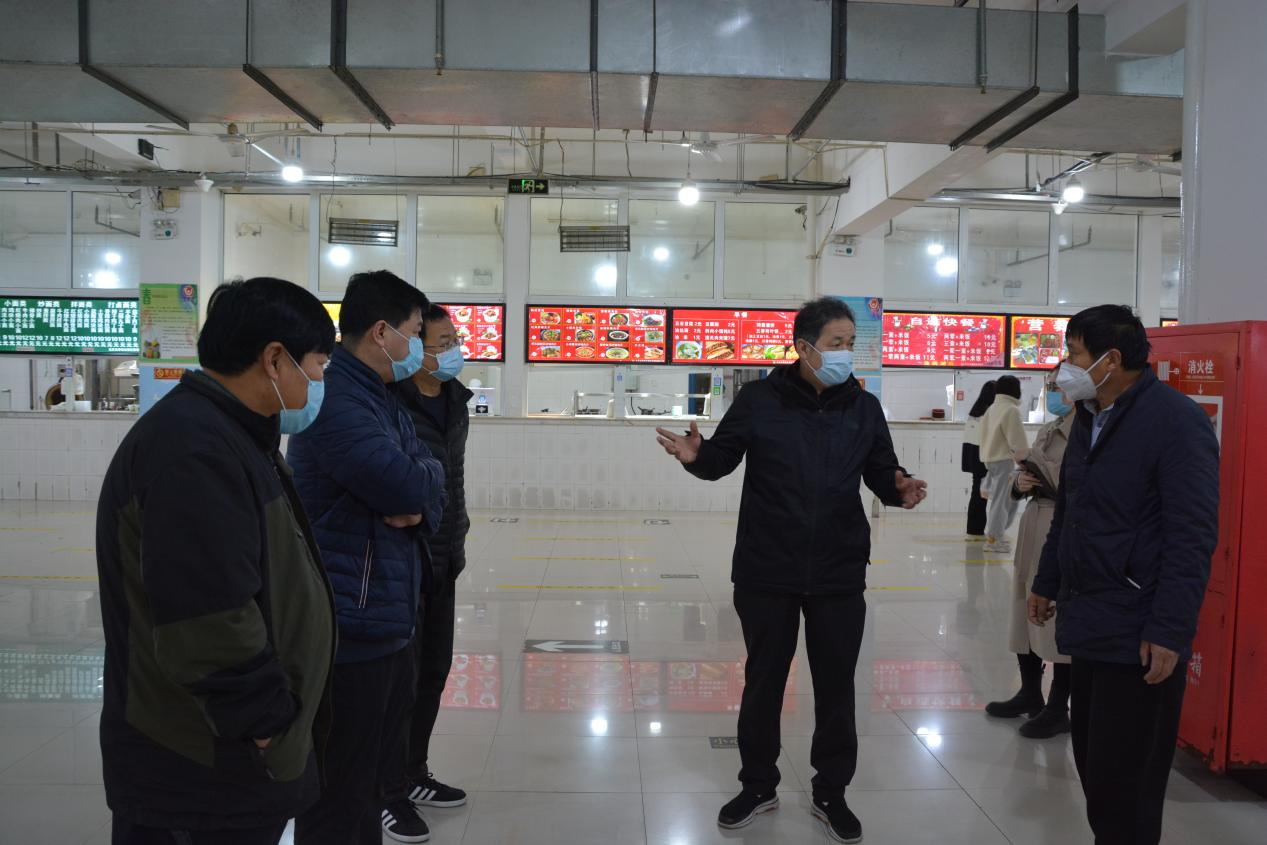 在学生食堂,院领导们详细检查了食堂卫生消杀、食材储备等情况。薛书记强调,食堂卫生安全事关全体师生身体健康,后勤处和食堂经营单位一定要高度重视。同时要确保食材采购、运输环节安全,食材进入校园之前必须完成消杀工作。