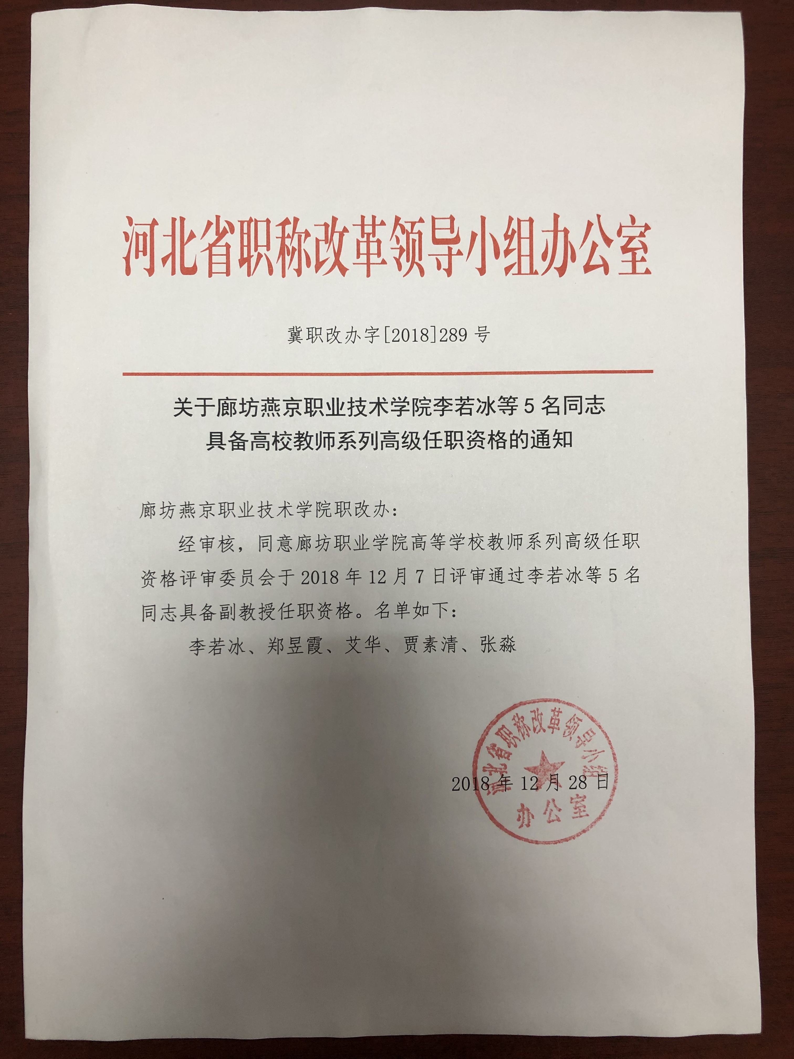 关于学院李若冰等5名同志具备高校教师系列高级任职资格通知的公示