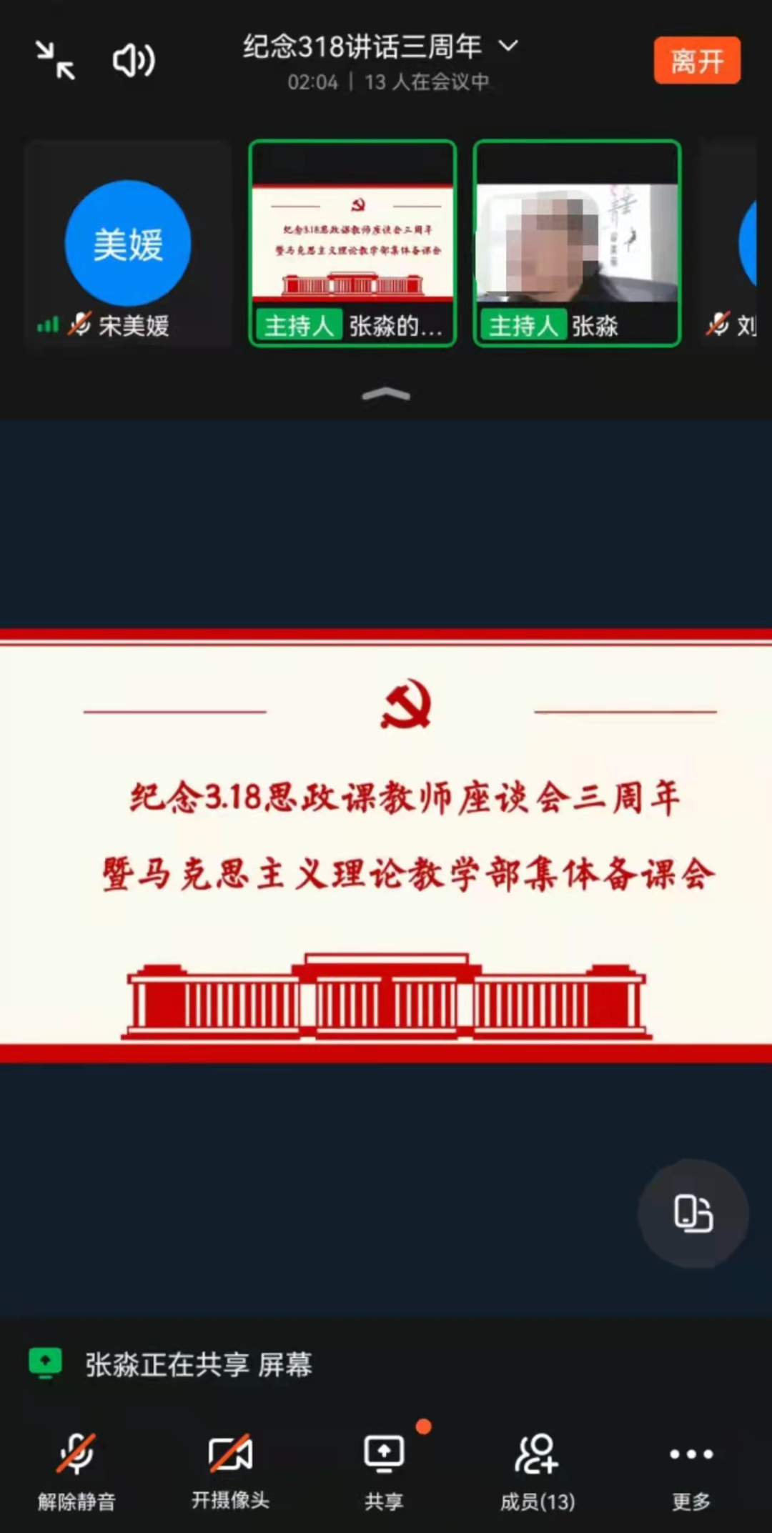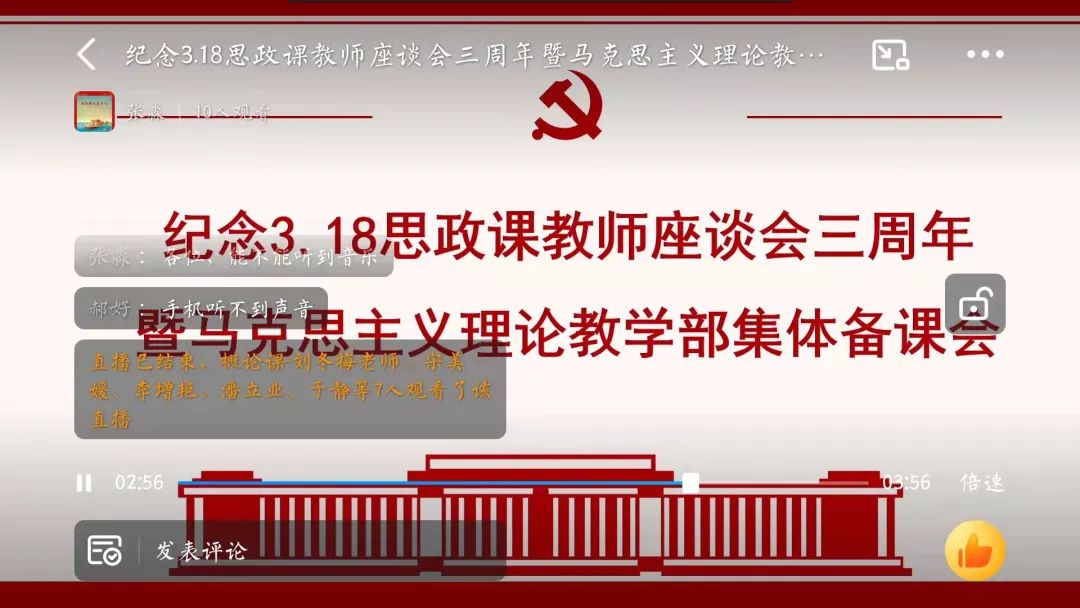 2022年3月18日是习近平总书记主持召开学校思想政治理论课教师座谈会并发表重要讲话三周年。为精准响应学院疫情防控要求,落实防疫主体责任,3月18日下午马克思主义理论教学部全体思政课教师利用专题网络会议形式,重温习近平总书记“3▪18”重要讲话精神,回顾了马克思理论教学部三年以来所取得成绩和经验,学习研讨如何全方位提升思政课教师的素质和能力,汇聚思政课创新力量,并对思政课教学工作进行再动员、再部署、再出发。马克思主义理论教学部副主任张淼主持会议。
