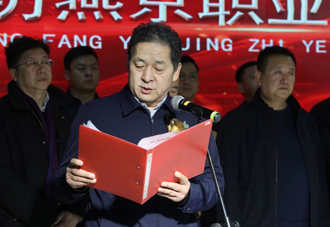 薛树林书记发表了热情洋溢的讲话,他介绍了学院办学治校取得的成就。他指出金年会app手机版在线登录学院内强素质,外塑形象,十年来取得了令人瞩目的成绩,得到了社会各界的广泛认可。一是校园设施日臻完善。学院总建筑面积已达23万平米,总投资近11亿元,校内设施体系完整,办学条件逐年改善,基础设施整体水平已跻身省内同类院校优秀行列。2020年,学院荣获省级园林绿化先进单位称号。二是专业布局逐步优化。学院主动对接河北省十大战略新兴产业和十二大重点产业,积极优化专业布局,目前已形成了机械制造、财经商贸、交通运输、旅游、电子信息、文化艺术等六大类专业群,构建了有竞争优势、特色鲜明、适应社会需求的专业体系。其中学院的书法专业为河北省民族文化传承与创新示范专业点,焊接技术与自动化专业、数控技术专业为中央财政重点支持建设专业。三是合作办学成果丰硕。学院坚持走“工学结合、校企合作”的办学道路,目前已与北京翔宇集团、北京商鲲教育集团、中关村软件园、苏宁电器、北京韦加无人机科技股份有限公司等多家单位开展联合办学,学院订单班在校生人数已达1000余人,建设校外实训基地27个。2019年10月29日,金年会app手机版在线登录职业技术学院已正式挂牌北京财贸职业学院廊坊校区,开启了京津冀高职教育合作领域的新阶段。四是教育教学成效明显。学院为河北省高技能人才培训基地,十年来已累计培养了六千名高技能劳动力,为地方经济社会发展提供了稳定的人才支撑。院内涌现出多位享有盛誉的名师,如书法系主任张志庆教授书法作品曾多次获得国家及省级书法比赛大奖,公共教学部张登芝教授主持省级精品开放课程喜获佳绩。学院建立了完善的教学管理制度体系,课堂文化建设、宿舍文化建设和实习实训文化建设颇具特色,应届毕业生一次就业率保持在90%以上,用人单位满意率也连年提升。学院综合竞争力在省内69所同类院校中排到第34位。五是办学情况持续向好。近年来学院办学规模保持了稳定增长势头,师资规模稳步扩大,人才培养质量提升明显。学院管理体制逐步顺畅,建立起了较为完善的规章制度体系,党建工作、教学工作、机关工作、行政管理工作、后勤保障工作等做到了有章可循,党委、行政权力运行规范顺畅,制约学院发展的诸多困难正在一一得到解决。