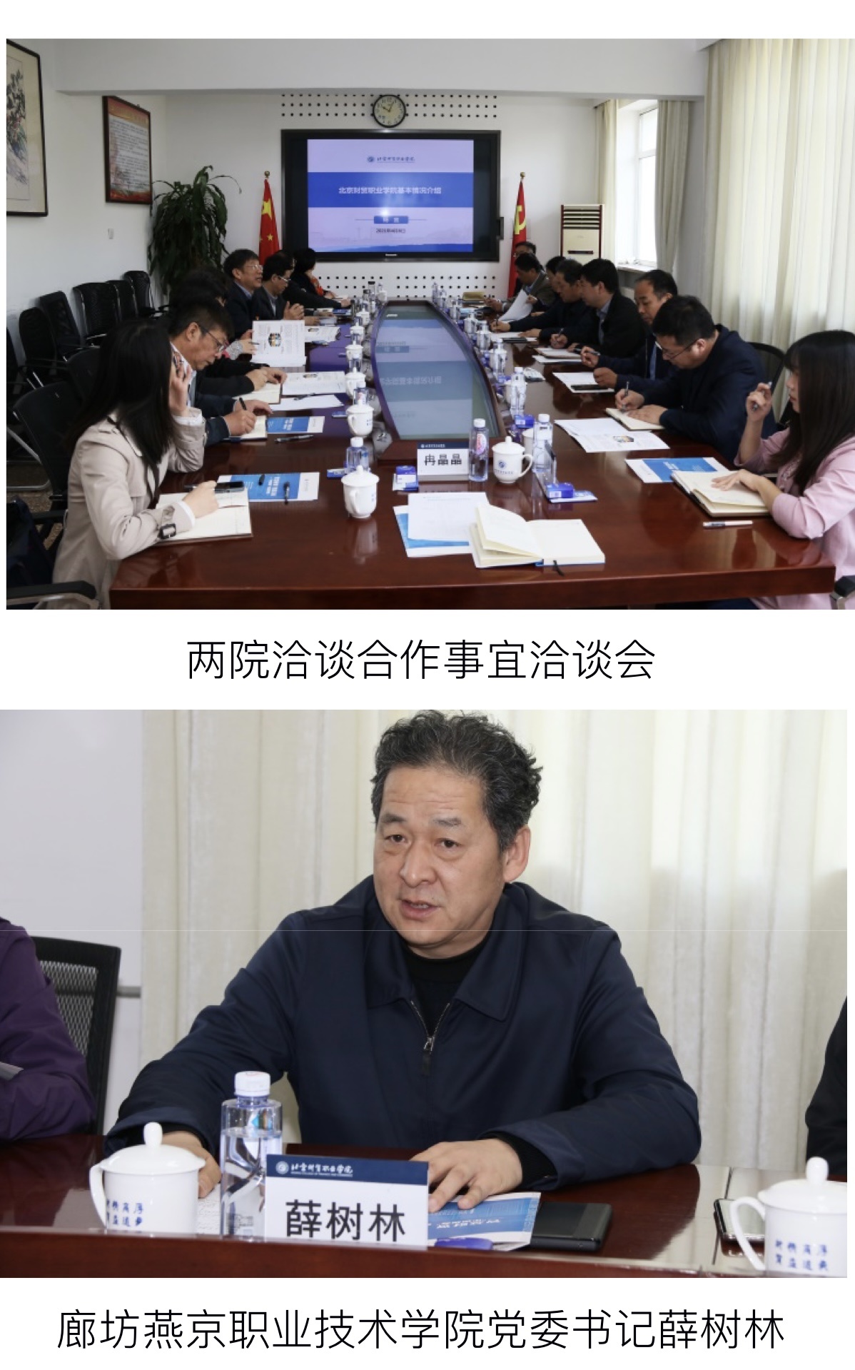 为贯彻北京市教委与廊坊市政府推进北三县职业教育合作的工作部署,深入落实《北京财贸职业学院 金年会app手机版在线登录职业教育协同发展合作协议》,4月8日上午,金年会app手机版在线登录党委书记薛树林、院长孙东辉、副院长林姿峰、党政办主任唐励铭、财经系书记梁国林、学生工作处副处长全斌及党政办工作人员等一行八人到北京财贸职业学院进行考察调研。北京财贸职业学院党委书记王红兵,党委副书记、校长杨宜,副校长李永生及相关部门负责同志接待了金年会app手机版在线登录调研组。
