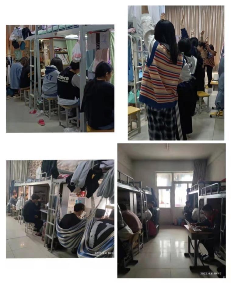 与上周五(4月1号)下午比较,今日上午,宿舍学生表现好的统计数据显示低了5.6个百分点,主要问题是学生做完核酸又去睡觉了,或者在床上上课,女生宿舍的这种情况更为突出。针对这种现象,教务处与学生进行了沟通,了解到连续上网课,部分学生进入疲惫状态。对此,教务处及时与各系部沟通,鼓励教师精巧设计教学环节,调动学生的积极性;同时,我们所有的辅导员、班主任要鼓励学生进行自我调节,养成良好的生活习惯,作息规律,每天进行适量的运动,保证充足的睡眠,调整好自己的心态,用积极向上的热情投入到学习中。