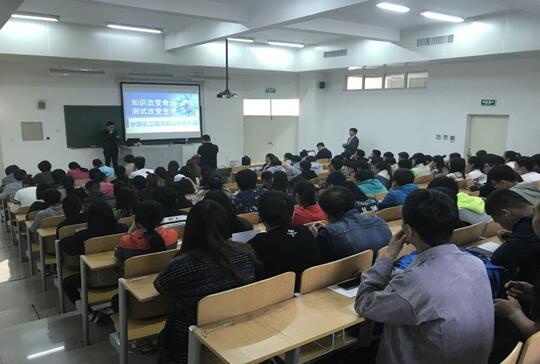 曹老师首先对高校毕业生所面临的挑战进行了分析,使学生对当前的就业形势有了一个清醒的认识;接着,从专业对口的角度就软件行业的发展、现状、未来发展趋势、开发和测试的职业发展路径、成长空间、岗位职责和岗位薪资等做了详细的介绍;最后对就业前的准备工作从心理准备、知识准备、能力准备和就业信息获取等方面进行了全面的指导。现场测试同学们的软件天赋问题“对一次性装水的纸杯, 你如何测试”,回答全面的同学将有曹老师和同行的于勇老师合编的畅销书作为奖励将现场气氛变得更是活跃。此外,曹老师还对面试的具体事项、简历中的加减分项结合案例进行了剖析。深入浅出的讲解让同学们高效地学到了成功就业的宝贵经验。最后,本次讲座在同学们的热烈掌声中圆满结束。