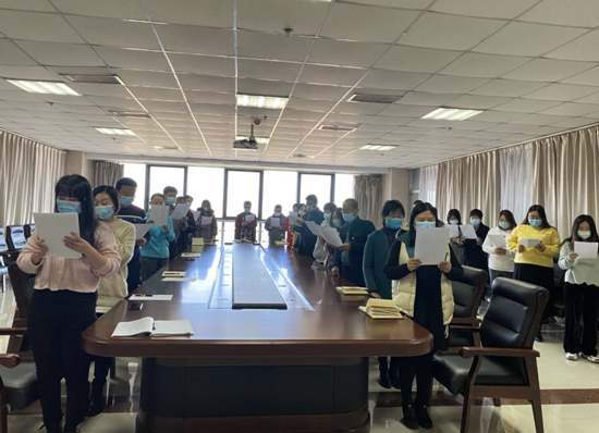 面对鲜红的党旗,大家一起高举右拳,再次庄严宣誓。“我志愿加入中国共产党,拥护党的纲领,遵守党的章程,履行党员义务……”15层会议室传来了庄严洪亮的声音,大家用铮铮誓言彰显永恒初心,牢记党员使命,永葆党员本色。