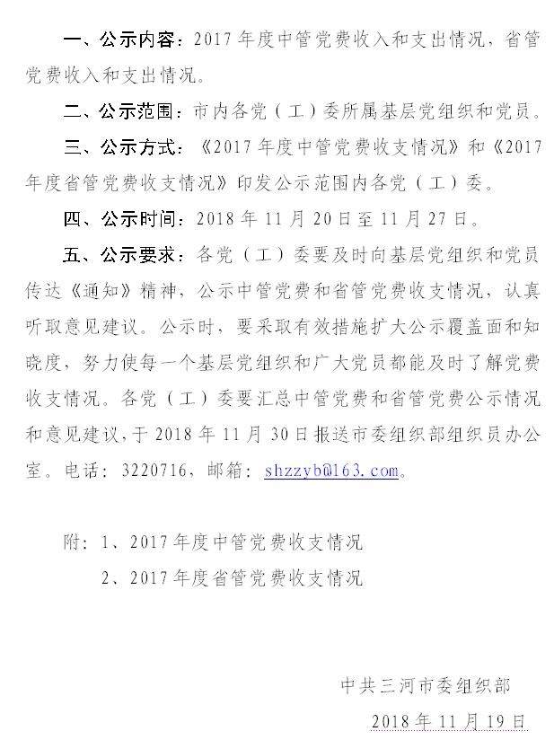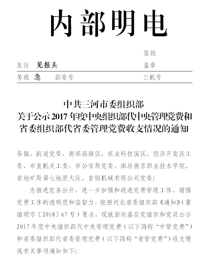 中共三河市委组织部关于公示2017年度中央组织部代中央
