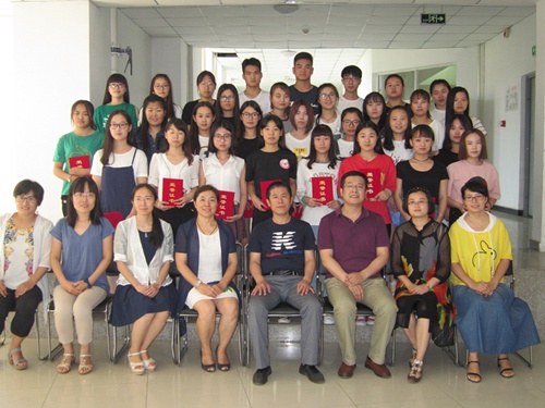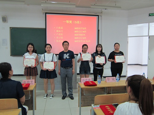之后,公共教学部领导和英语教研室的全体教师为参加阅读、写作、演讲三项大赛的获奖选手颁发荣誉证书,并与获奖选手合影留念。